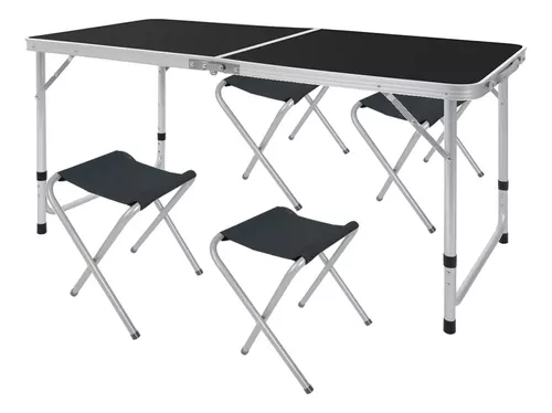 MESA DE CAMPING PLEGABLE 120 x 60 x 70 cm + 4 SILLAS BANCOS